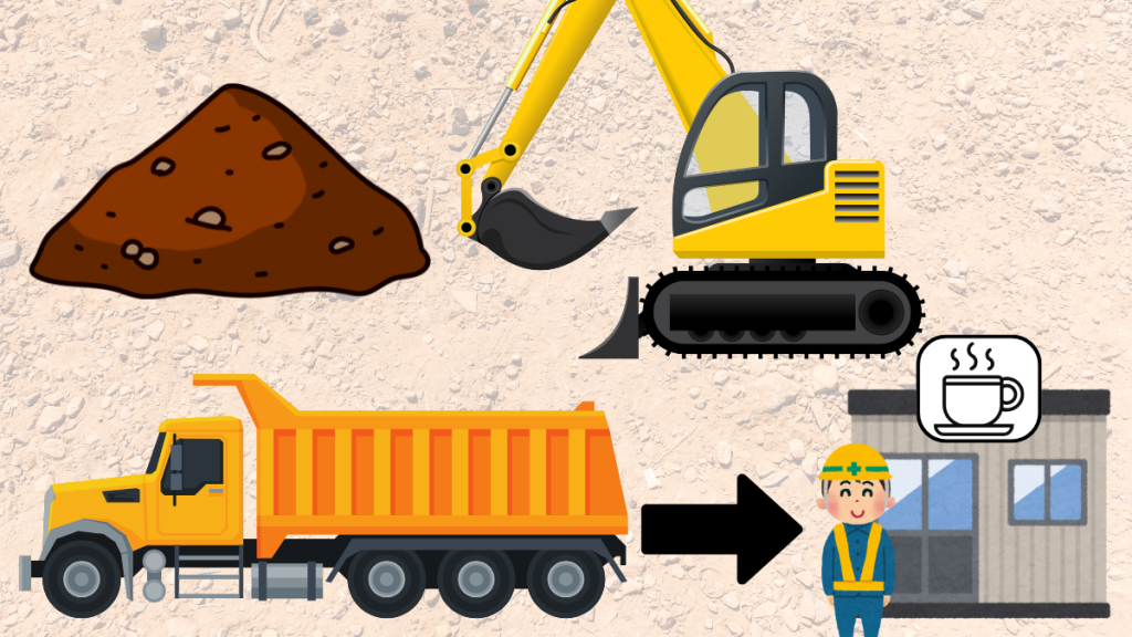 我が社が入る現場では、積込・荷下ろしに30分前後かかる場合がほとんどです。つまり、この時間を「休憩」にカウント出来れば、積込場所と荷下ろし場所をピストンする現場の場合、自動的に運行に「休憩」が組み込めるため、別に休憩時間を取る必要が無くなるのです。現場によっては、1往復余分に運行出来る場合も多いでしょう。これは即ちドライバーの収入に関わってくる問題なのです。